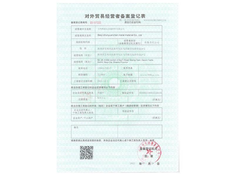 宝鸡顺源辰金属材料有限公司位于“中国钛都””华夏始祖炎帝故里――陕西宝鸡,本公司是专门从事钛及钛合金、钨、钼、镍等稀有金属、难熔金属及合金材料的生产、加工企业。公司依托中国钛城、钛谷雄厚的行业资源,强大的有色金属研发和机械加工实力,现已形成集钛及钛合金的板、棒、管、丝及其制品为主导,钛设备制造,难熔金属材料的生产,精密数控机械加工、钛工艺礼品等多元化发展。主要产品为有色金属的板、棒、丝、管件及各种化工设备的研发与生产销售。公司产品广泛运用于、电子、化工、石油、冶金 等各个领域。我们的产品销往美国、德国、日本及欧洲国家和地区。顺源辰金属材料有限公司本着“质量第一 、客户第一、 信誉第一”“追求卓越”“求实创新的企业宗旨,真诚为广大用户提供最优质的服务’敢于创新、勇于探索,努力实现公司的可持续发展。宝鸡顺源辰金属材料有限公司愿与国内外新老客户携手共进,共创辉煌佳绩!